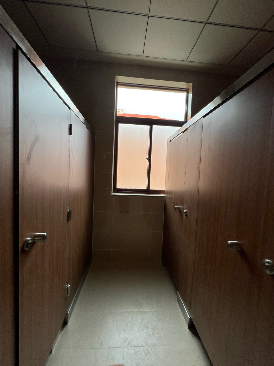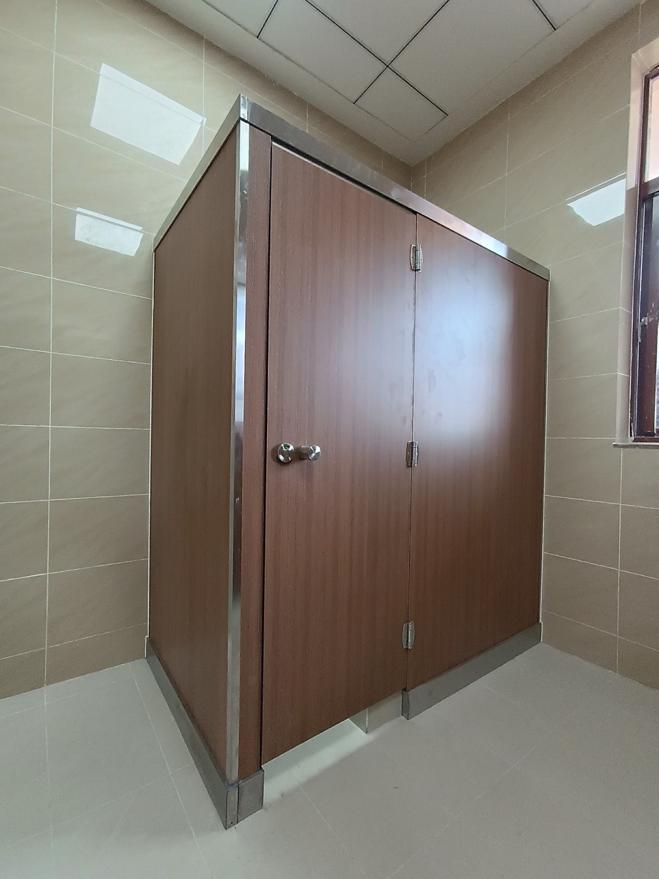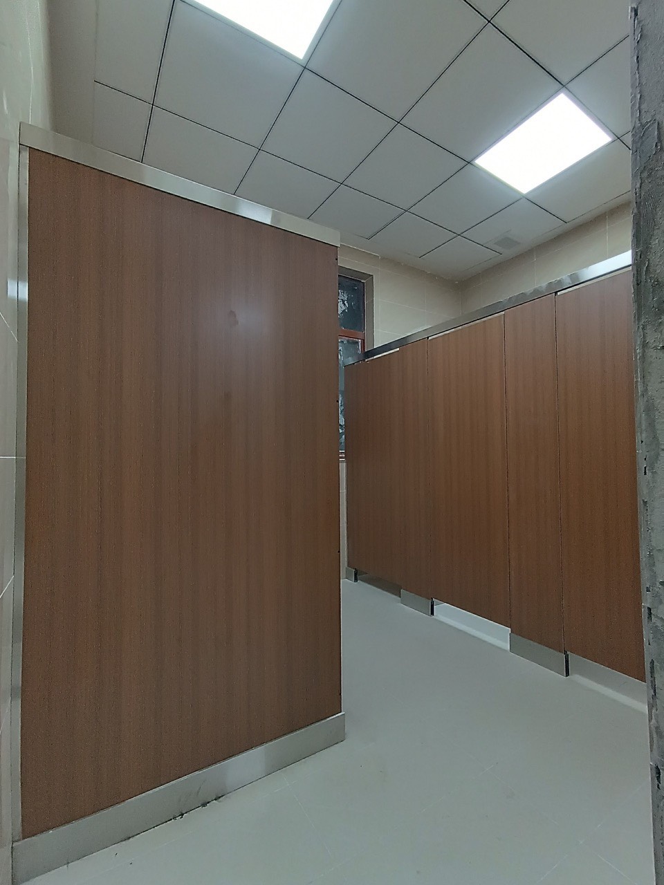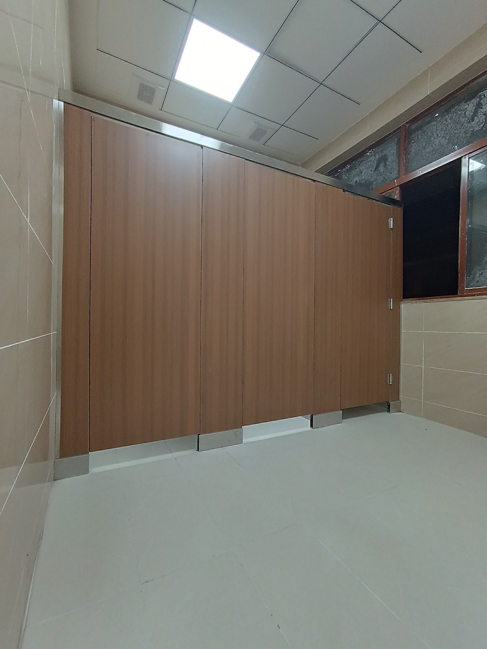 Dự án sử dụng loại vách ngăn HPL (High Pressure Laminate), một loại vật liệu nổi bật với độ bền cao, khả năng chống thấm nước và chống trầy xước, phù hợp với những khu vực vệ sinh có cường độ sử dụng cao. HPL không chỉ đảm bảo tính thẩm mỹ mà còn giữ được độ bền bỉ theo thời gian, giúp không gian vệ sinh luôn mới mẻ và sạch sẽ.